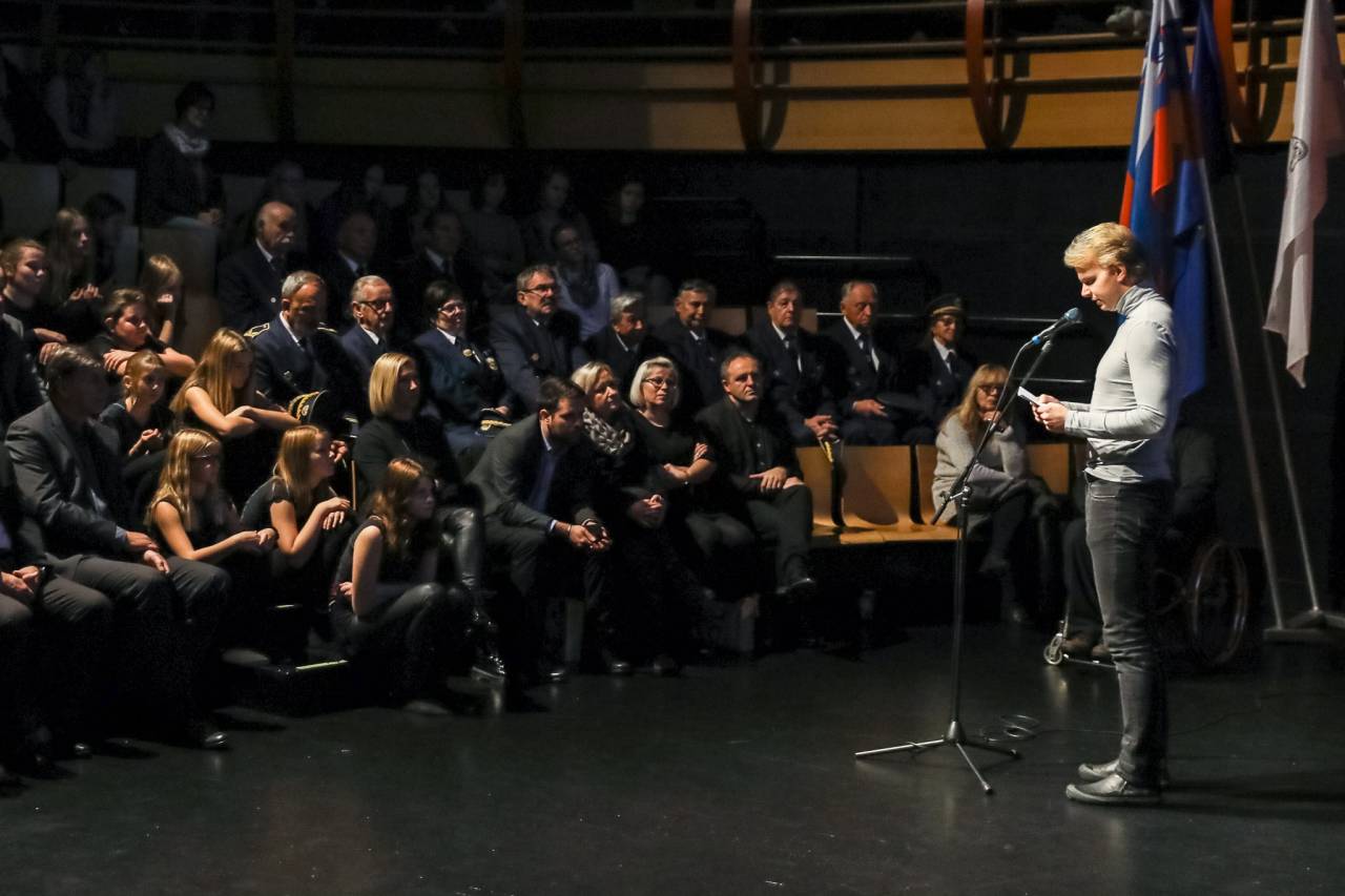 Slavnostna govornica, županja Mestne občine Ptuj Nuška Gajšek, je poudarila, da bi nas zgodbe žrtev in teh, ki ostanejo za njimi, morale predramiti iz otopelosti in nas strezniti.