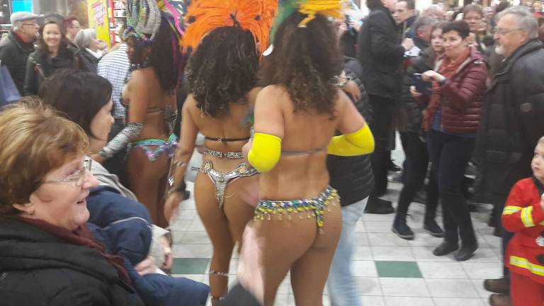 Pravo brazilsko karnevalsko vzdušje pa so pričarali tudi v Europarku, kjer je garažna hiša zasedla vse kapacitete, publika pa se je trla pred bleščečimi plesalkami in plesalcema/bobnarjema plesno-glasbene skupine Bahia Dance Group. Naj omenimo, da prostora za avto ni bilo, medtem o so množice navdušeno pohajale po Europarkovih prostorih, v katere je bil vdihnjen Rio de Janeiro zaradi bogatih brazilskih ritmov in kostumografije.