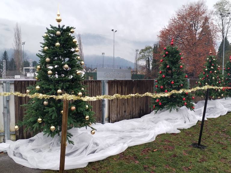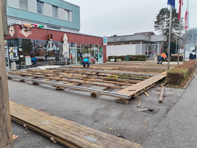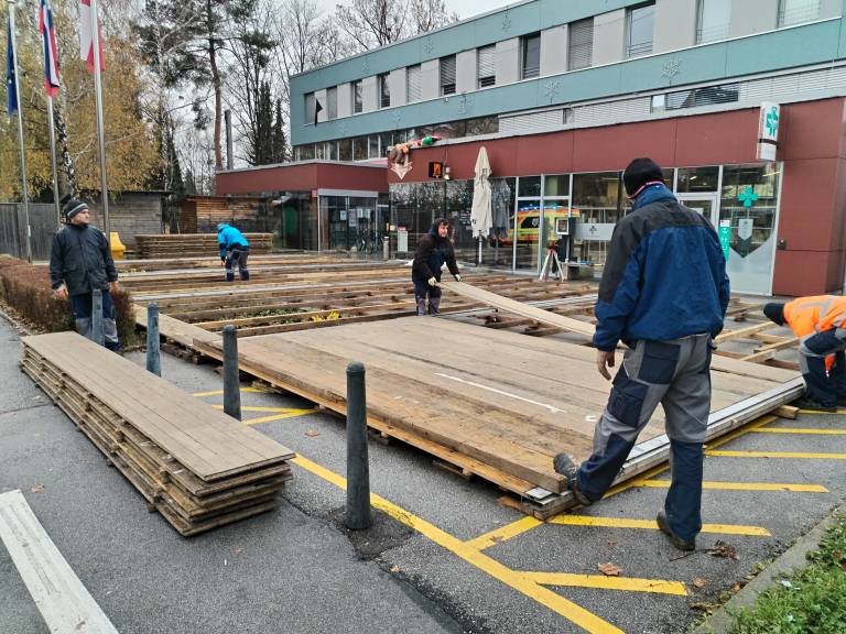 V Kamnici so ravno v času našega obiska postavljali drsališče, jutri pa bo že šlo zares.