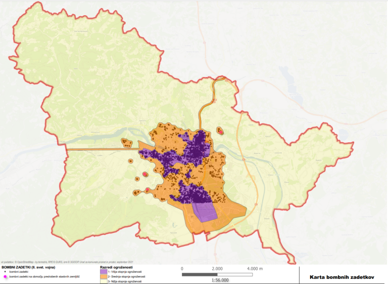 Najvišja stopnja ogroženosti je glede na karto bombnih zadetkov potemtakem na območju Tezna, Studencev in središča mesta.