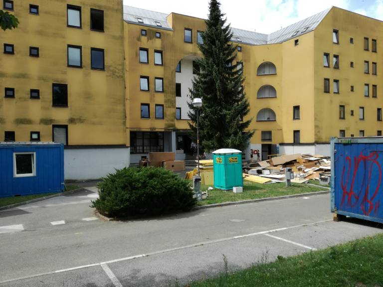 V teh dneh potekajo v največjem mariborskem študentskem domu priprave na začetek del, ki jih bo opravilo koprsko podjetje Makro 5 Gradnje d.o.o. Skoraj celotna notranjost študentskega doma je že izpraznjena in pripravljena, da zaropotajo gradbeni stroji.