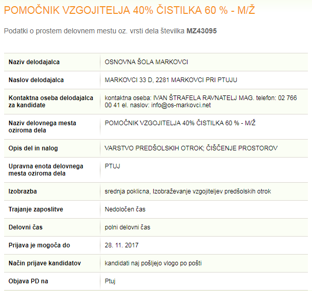 Na portalu Zavoda Republike Slovenije za zaposlovanje je te dni vzbudil precej začudenja oglas za delovno mesto.