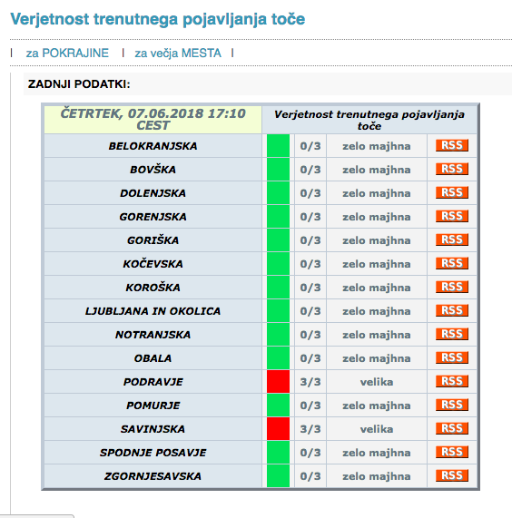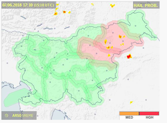 Vremenoslovci iz Agencije Republike Slovenije za okolje so izdali rdeč alarm za Podravje za verjetnost trenutnega pojavljanja toče.