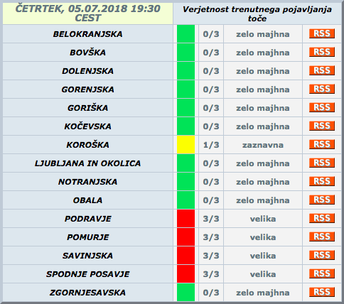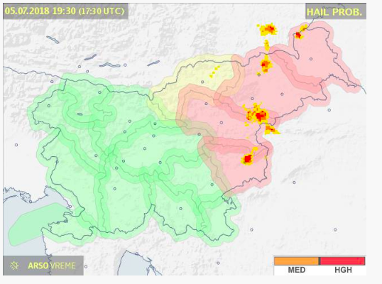 Vremenoslovci so za današnje pozno popoldne napovedali nevihte in niso se zmotili. Agencija Republike Slovenije za okolje je tako že izdala rdeč alarm za verjetnost trenutnega pojavljanja toče v Podravju. Nevihte se gibljejo od zahoda proti vzhodu.