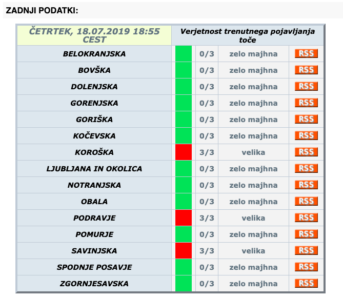 Okoli 18. ure je Agencija Republike Slovenije za okolje izdala rdeč alarm za verjetnost trenutnega pojavljanja toče v Podravju.