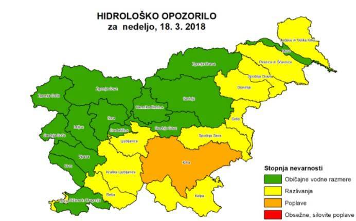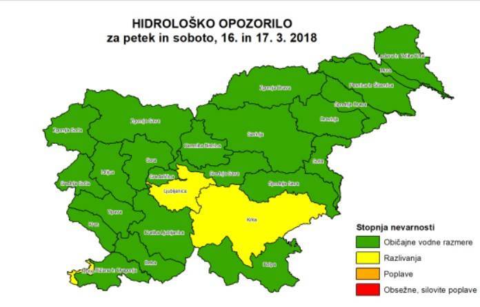 Največje naraščanje je pričakovati pri reki Krki in Ljubljanici. Obe bosta močneje naraščali jutri. Krka lahko zlasti v nedeljo poplavi na širšem območju, Ljubljanica pa na območju pogostih poplav.