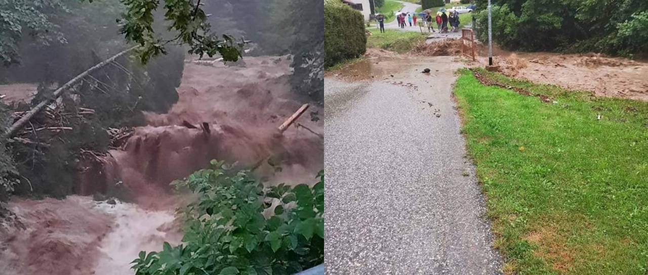 Po hudih nalivih so sinoči močno narasli vodotoki s Pohorja, predvsem Oplotnica, Dravinja in Mislinja. Oplotnica je presegla opozorilni pretok, ponekod je prišlo do razlivanj.