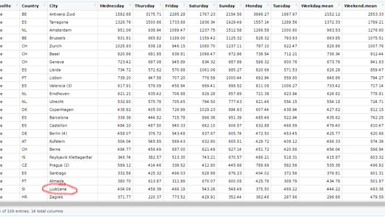 Po zadnji analizi iz leta 2022 je prvo mesto zasedel belgijski Antwerp, sledi španska Tarragona, tretji pa je nizozemski Amsterdam. Med prvimi desetimi so še: Basel (Švica), Ženeva (Švica), Lleida (Španija), Lizbona (Portugalska), Valencija (Španija), Eindhoven (Nizozemska), Utrecht (Nizozemska), Kopenhagen (Danska), Barcelona (Španija), Castellon (Španija), Berlin (Nemčija), Kufstein (Avstrija), Bern (Švica), Reykjavik (Islandija) in Praga (Češka). Ljubljana je na seznamu zasedla 23. mesto.
