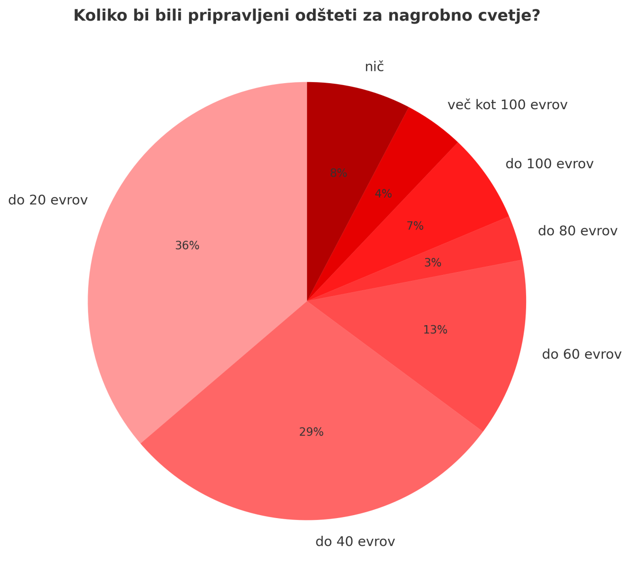 - do 40 evrov je označilo 29 odstotkov oziroma 26 ljudi,