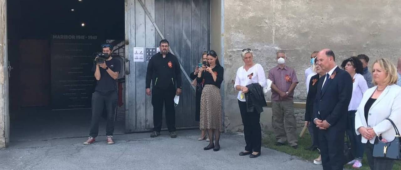 Ruski veleposlanik v Sloveniji Timur Rafailovič Ejvazov je danes ob dnevu zmage položil venec pred nekdanjim nacističnim taboriščem Stalag XVIII D v Mariboru.