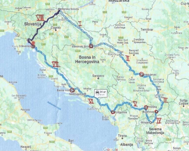 »Prvi dan gremo do Slavonskega Broda, drugi dan do Kragujavca, tretji dan je mišljeni makedonska meja – Bujanovac, potem pa preko Skopja v Prištino, iz Prištine v Podgorico. Iz Podgorice nato v dolino Neretve in v Metković, pa potem po jadranski magistrali do Zadra pa do Crikvenice in na koncu do Kočevja, Novega mesta in domov,« je še pojasnil Cipot.
