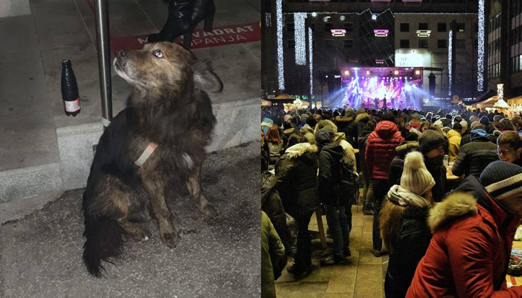 Na Facebooku, v skupini društva Srce za bulle, je zaokrožila fotografija za ograjo privezanega psa na silvestrovanju na Trgu Leona Štuklja. Žalostno, ampak resnično. Sinoči je nekdo svojega psa privezal na ograjo pri glavnem vhodu pred Novo KBM in ga tam pustil sredi samega dogajanja in pokanja vse do jutra.