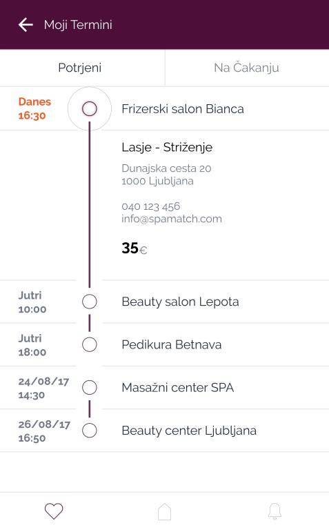 Ko si bo uporabnik zaželel določene kozmetične storitve, se mu bodo prikazali vsi prosti ponudniki v dosegu, ki si ga sam določi. Vsi ponudniki bodo imeli določeno ceno, oceno in tudi razdaljo od uporabnika.