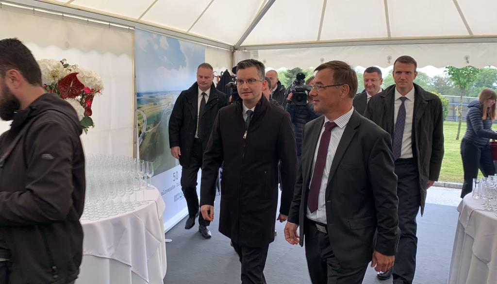 Na ploščadi ob strojnični zgradbi hidroelektrarne Zlatoličje so se včeraj ob 50. obletnici delovanja največje hidroelektrarne zbrali najvišji predstavniki države.