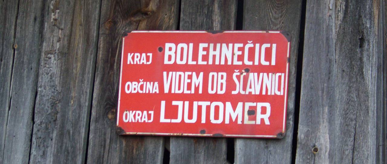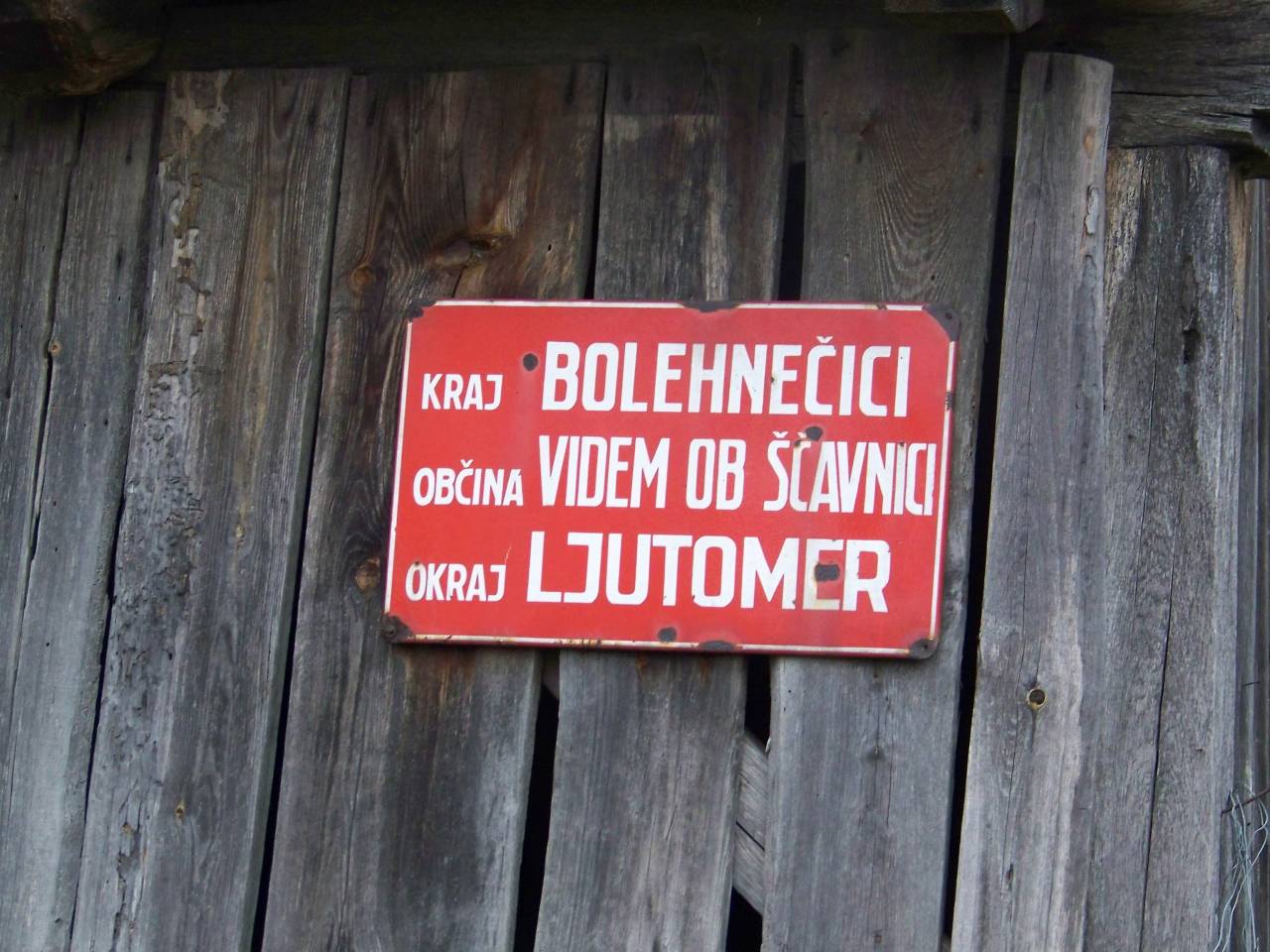 Tako je na primer v vaseh v občini Sveti Jurij ob Ščavnici, ki na zastarelih tablah še ohranja nekdanje ime Videm ob Ščavnici in se uvršča pod okraj Ljutomer. Tablo v fotografiji smo zasledili na eni od domačij v naselju Bolehnečici.