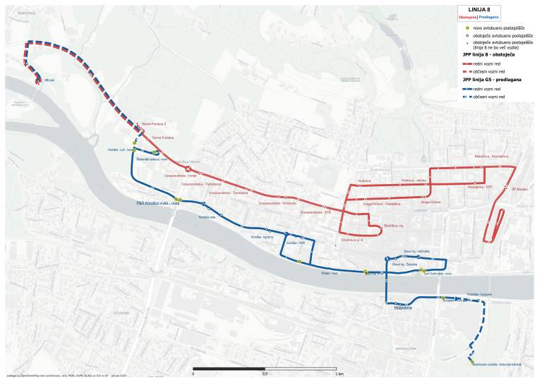 Linija številka 8 bi tako svojo pot začela pri Termah Fontana, zavila mimo Lidla na Gosposvetski cesti v študentski kampus, svojo pot nadaljevala po Koroški cesti, kjer bi pri Fakulteti za elektrotehniko, računalništvo in informatiko avtobusi zavili na Lent in pot nadaljevali vse do Vodnega stolpa.