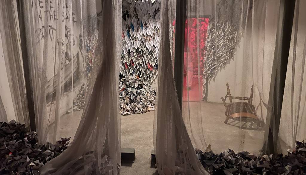 Projekt izdelovanja papirnatih ladjic za žrtve genocidov na razstavi v muzeju.
