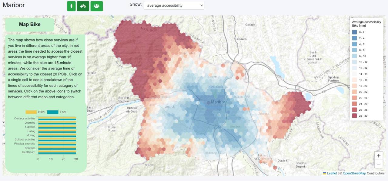 V Ljubljani potrebujemo v povprečju šest minut vožnje s kolesom, da dosežemo osnovne storitve. Kaj pa v Mariboru? Kje je štajerska prestolnica na seznamu mest, ki izpolnjujejo pogoje za tako imenovana 15-minutna mesta?