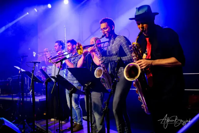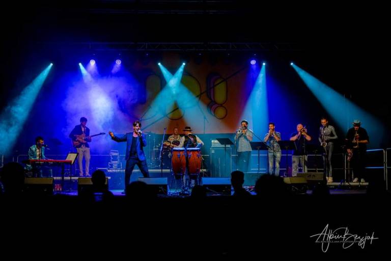 »Imamo tri trobente, dva saksofona, pozavno, boben, bas, kitaro in klaviature, jaz kot vokalist pa igram še na konge in kitaro,« opiše David.