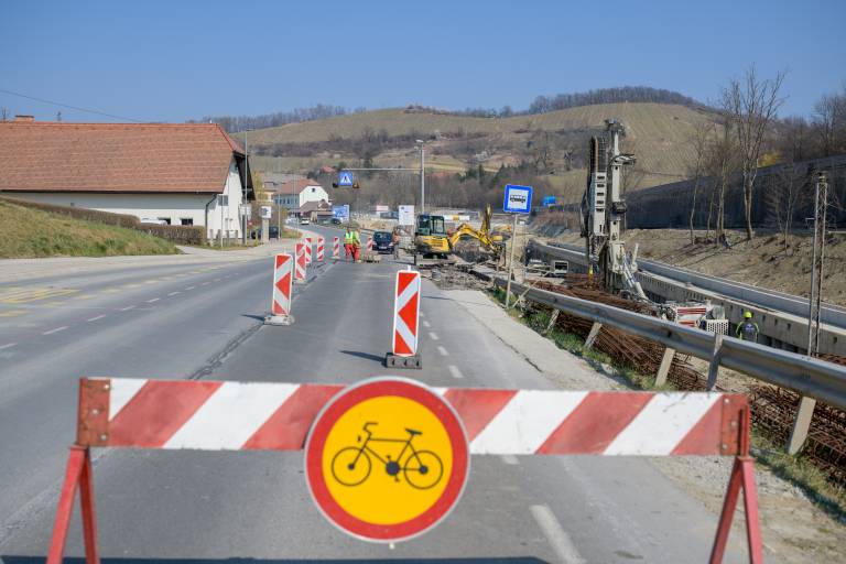 V okviru gradnje železniškega odseka Maribor - Pesnica je pri izvedbi pilotne stene zaradi nepredvidenih geoloških razmer v zaledju prišlo do razpok cestišča. Te pa so nevarno ogrozile vodovodni cevovod.