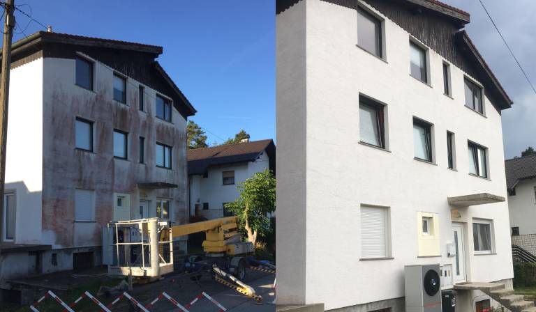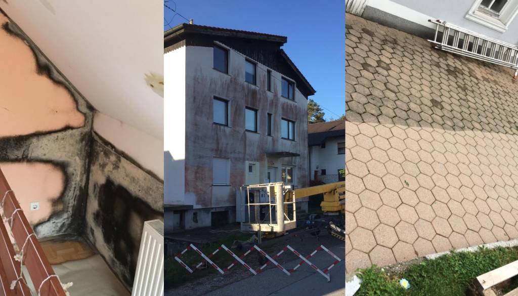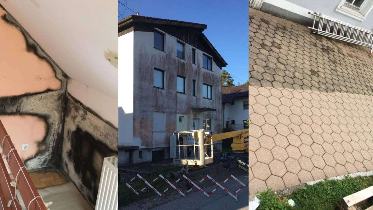 »Na hiši smo pred osmimi leti naredili novo fasado. Stara fasada je bila dolga leta čista na tej novi pa so se že po 5 letih na severni strani fasade začele pojavljati sivkaste lise, za katere sem mislil, da so umazanija sosedovega dimnika. Tisto zimo se je stanje na fasadi izredno poslabšalo – prej sive lise so počrnele in se preselile tudi na zahodno stran fasade. Lani, ko je počrnela skoraj vsa fasada smo se odločili za sanacijo. Fasado smo visokotlačno oprali, premazali z emulzijo in jo prebarvali. Že letošnjo pomlad je fasada spet posivela,« pripoveduje Bojan iz Maribora, ki je največ stalo nepoznavanje problematike s strani izvajalcev.