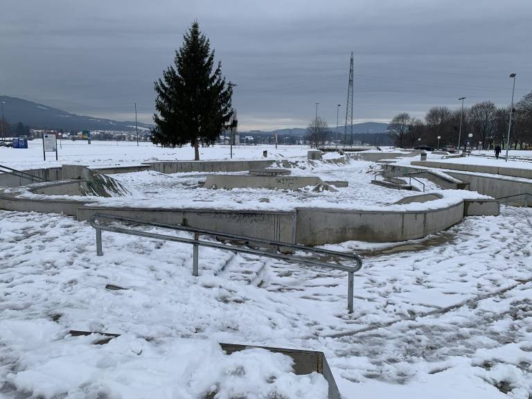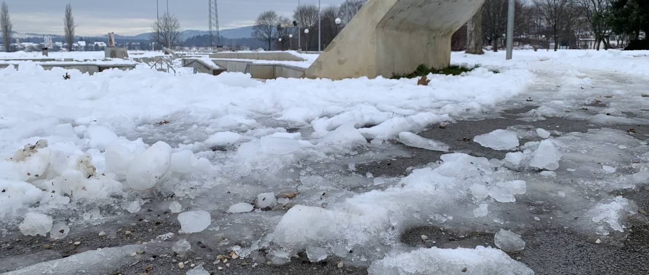 V noči iz četrtka na petek, ko je bilo močno sneženje, je Snaga z namenom omogočanja varnih pešpoti s kamenčki posipala tudi del mariborskega skate parka.