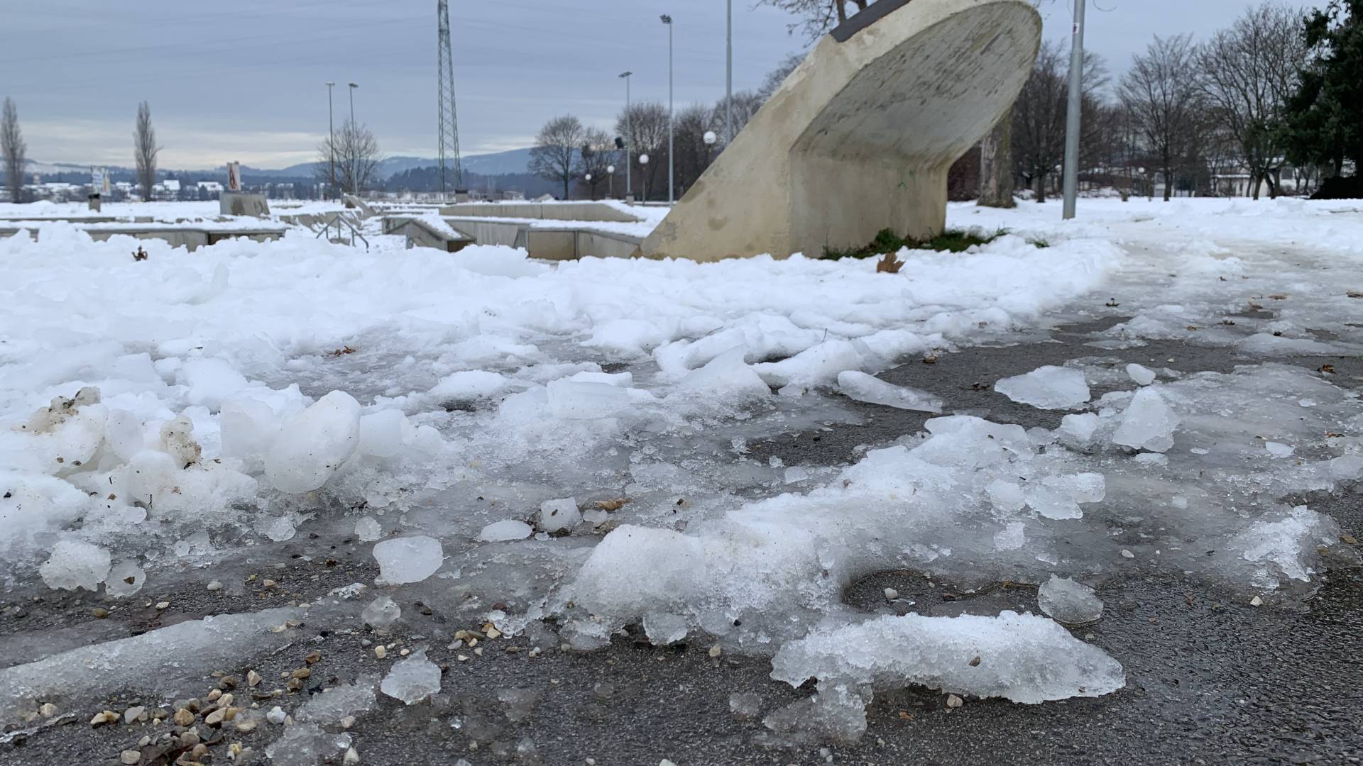 Kamenčki in pesek v zimskih razmerah omogočata lažjo in manj nevarno hojo, na skate parku pa je posip izredno nevaren.