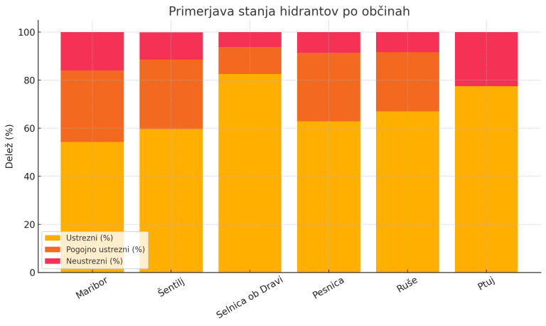 Kakšno je stanje v Mariboru in v okolici? Pri nekaterih okoliških občinah smo preverili, kakšno je stanje hidrantnega omrežja, koliko hidrantov imajo, koliko jih je ustreznih in koliko ne dosega predpisanih standardov. Podatki razkrivajo boljše stanje omrežja kot v Pomurju.