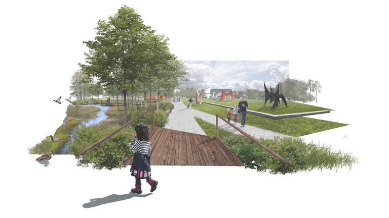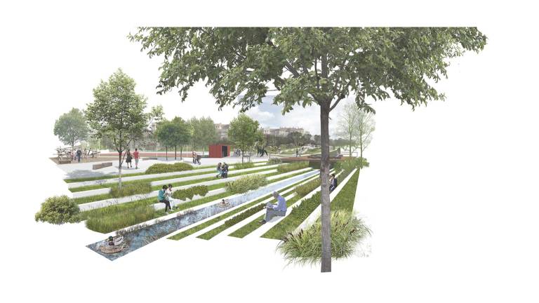 Parkovna ureditev, ki bo obsegala 2,62 hektarja ob prenovljeni strugi potoka, bo urejena v več fazah.