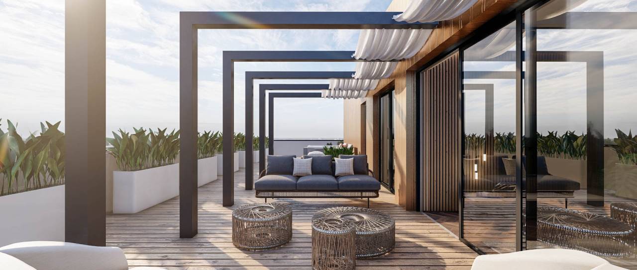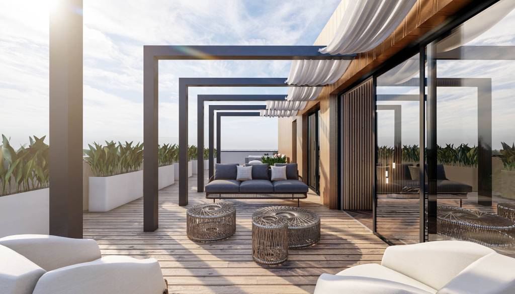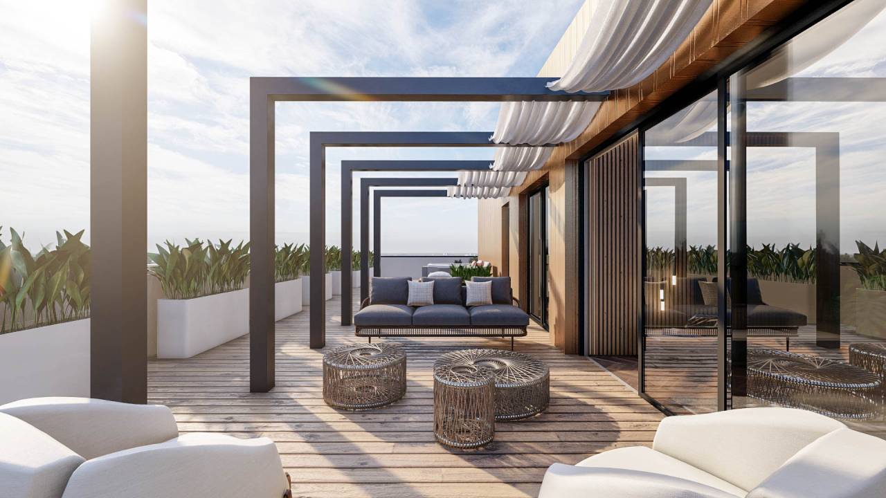»Prednost penthouse stanovanj je, da se nahajajo na vrhu stavbe in s teras nudijo odlične razglede. Zunanje površine ima vsako stanovanje, terase so nadpovprečno velike, zračne ter sončne. Nudijo tudi možnost namestitve jacuzzijev, pergol in nasaditev zelenja. Višina stropov je 2,8 metra, kar daje notranjim prostorom še večjo zračnost ter prostornost.«