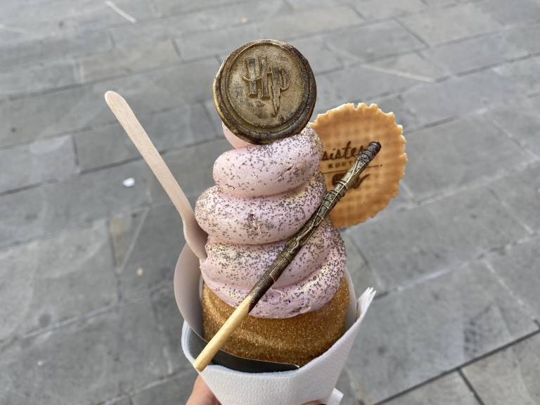 Sestavljen je iz zlatega sladkorja, čokoladnega namaza, čokoladnega rjavčka (angl. brownie) s karamelo, sladoleda iz bele čokolade z gozdno borovnico, borovničevega preliva in vanilijeve kreme. Vse skupaj na vrhu zaključi Harry Potter čokoladni pečat ob spremljavi čarovniške palice.