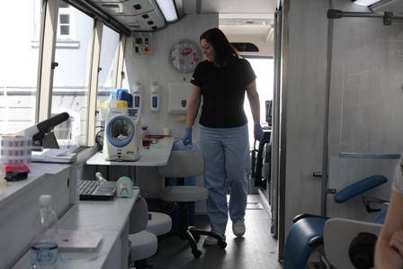 »Krvodajalec mora imeti še normalen pritisk in normalno raven hemoglobina, ki pri ženskah znaša 125 in moških 135 enot,« pojasni ena izmed zdravnic na dogodku.