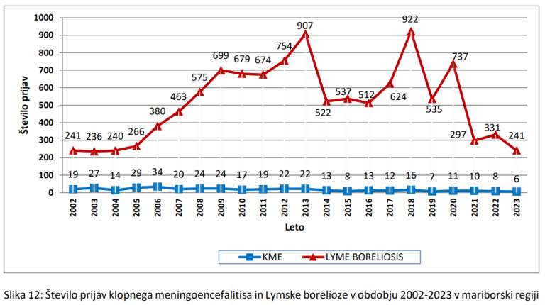Po podatkih mariborske območne enote Nacionalnega inštituta za javno zdravje je bilo v letu 2023 na območju upravnih enot Maribor, Slovenska Bistrica in Ptuj skupaj zabeleženih le šest prijav okužbe s klopnim meningoencefalitisom.
