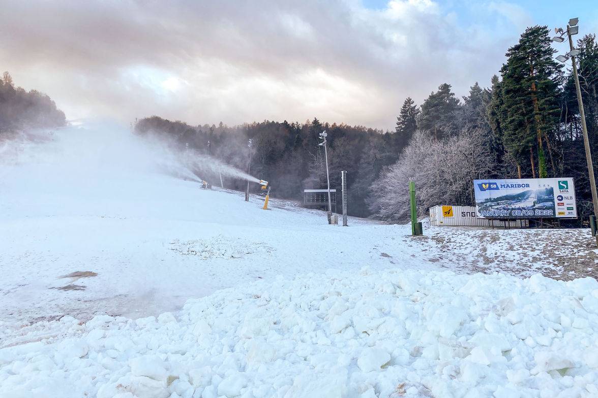 Devet dni pred snežno kontrolo se je Maribor končno prebudil ob streljanju snežnih topov. Potem ko so bile to zimo vse vremenske napovedi na spodnji poseki proge za 58. Zlato lisico napačne, so imele vsaj v odločilnem trenutku prav, opolnoči se je dovolj ohladilo, da se je 60 avtomatskih snežnih topov ob progi vključilo in začelo bruhati sneg.