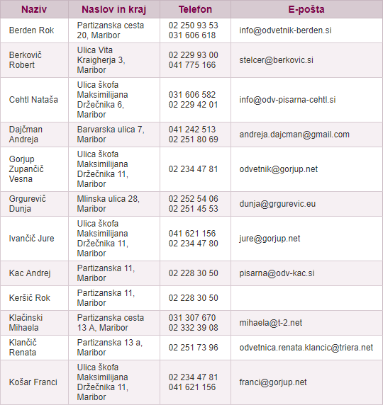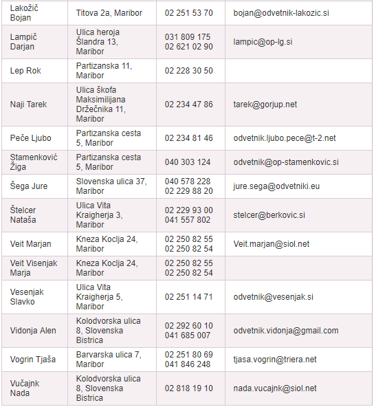 Brezplačno pravno pomoč bo nudilo tudi šestindvajset odvetnikov iz Maribora, ki si jih lahko ogledate na spodnjem seznamu.