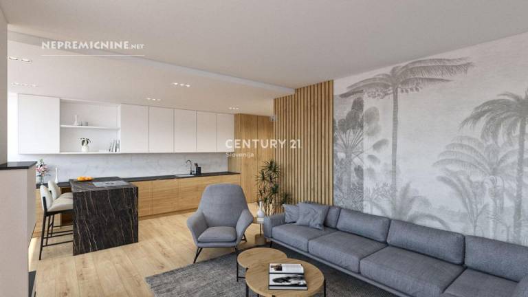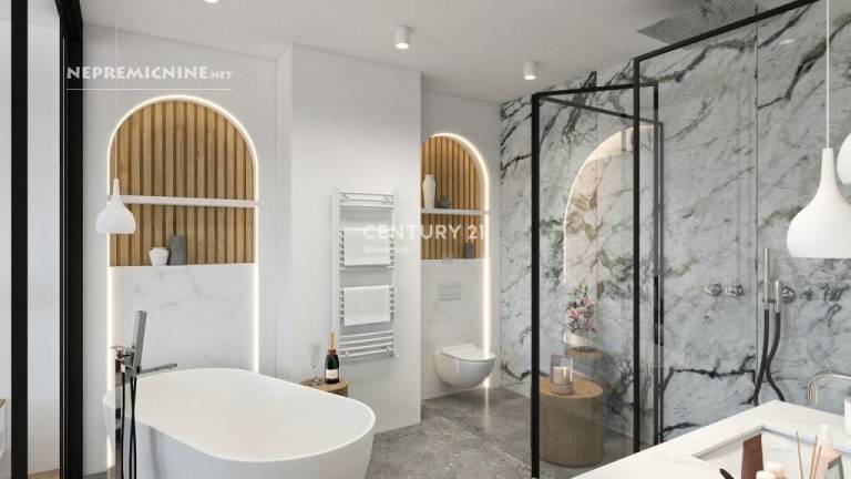 Stanovanje ima talno gretje, klimatsko napravo, protivlomna vrata. Poleg tega stanovanje nudi veliko teraso in je zasnovano z odprtim, svetlim tlorisom in velikimi steklenimi okni, kar zagotavlja veliko naravne svetlobe.