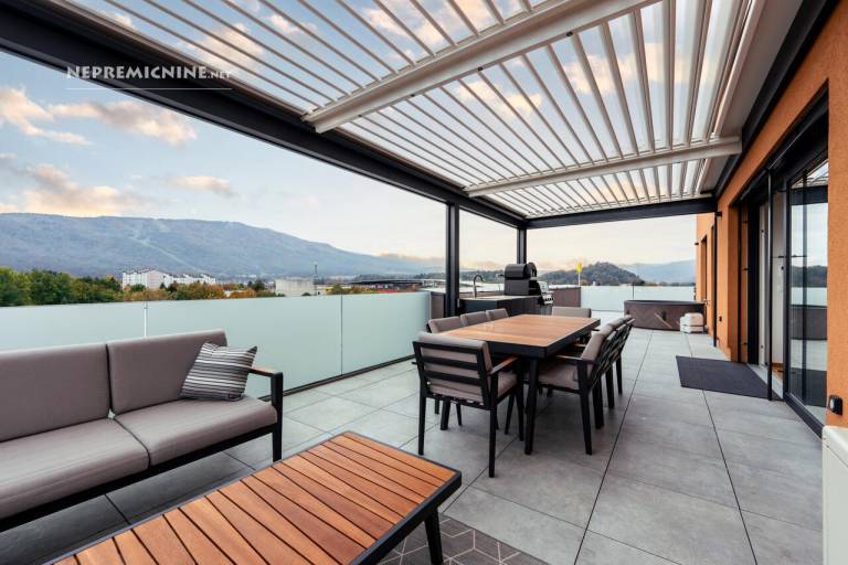 Na Studencih v Mariboru je naprodaj luksuzno stanovanje v skupni izmeri 205,8 kvadratnih metrov z veliko teraso in pogledom na Pohorje in Pekrsko gorco.