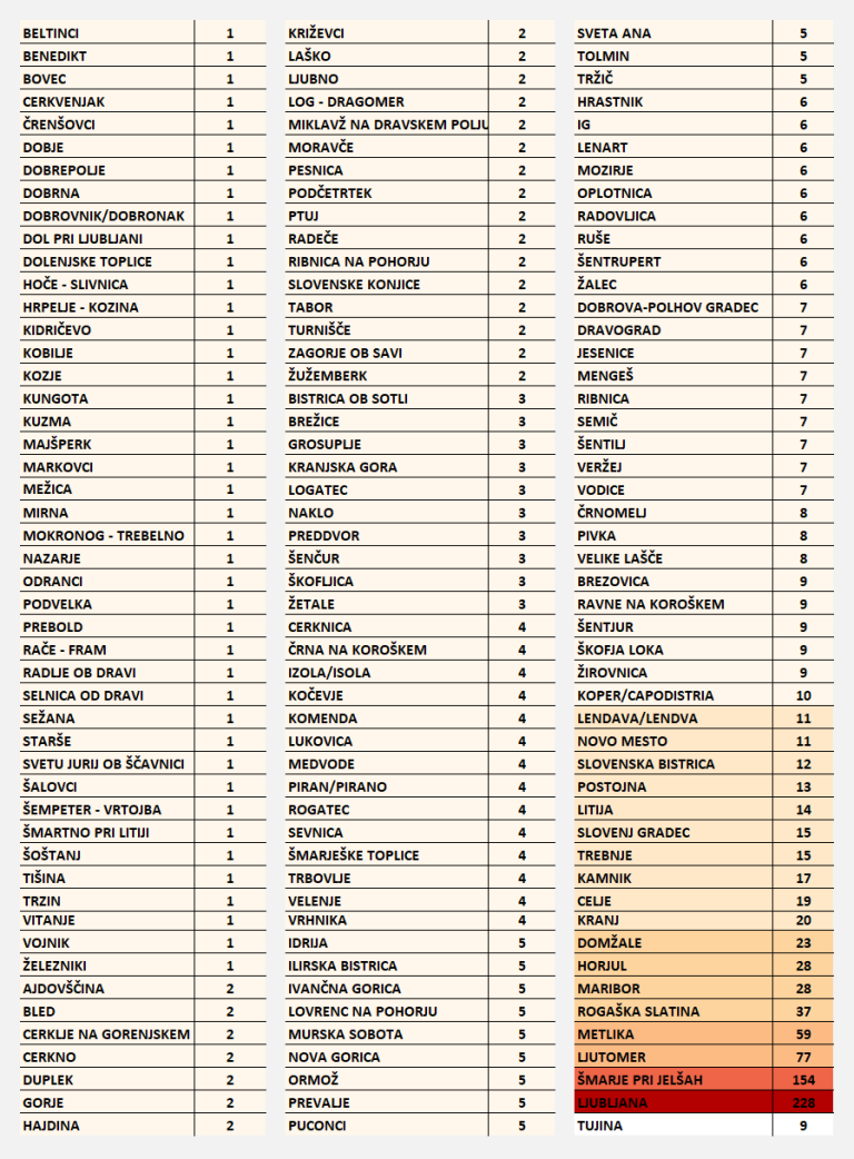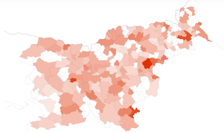 Razporeditev prijavljenih primerov koronavirusa po občinah