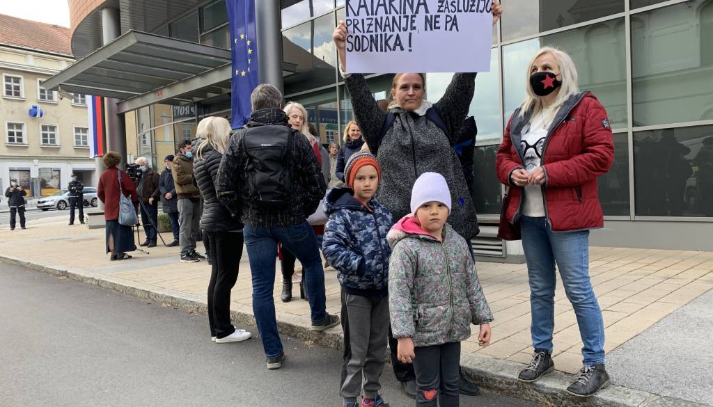 Omenjena dijakinja je morala pred sodnika za prekrške stopiti prejšnji teden. V njeno podporo se je pred poslopjem Okrajnega sodišča v Mariboru zbrala množica ljudi in jo pozdravila z aplavzom.