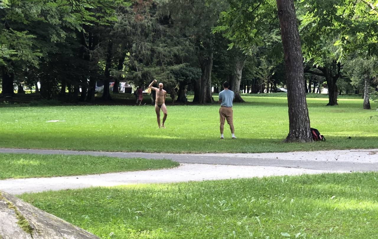 Bralci so nas opozorili na nenavadno dogajanje. Pred očmi mimoidočih, ki so prišli na miren sprehod v soboški park, in pred otroci, ki so se igrali v zavetju dreves, je moški popolnoma brez oblačil izvajal plesne gibe.