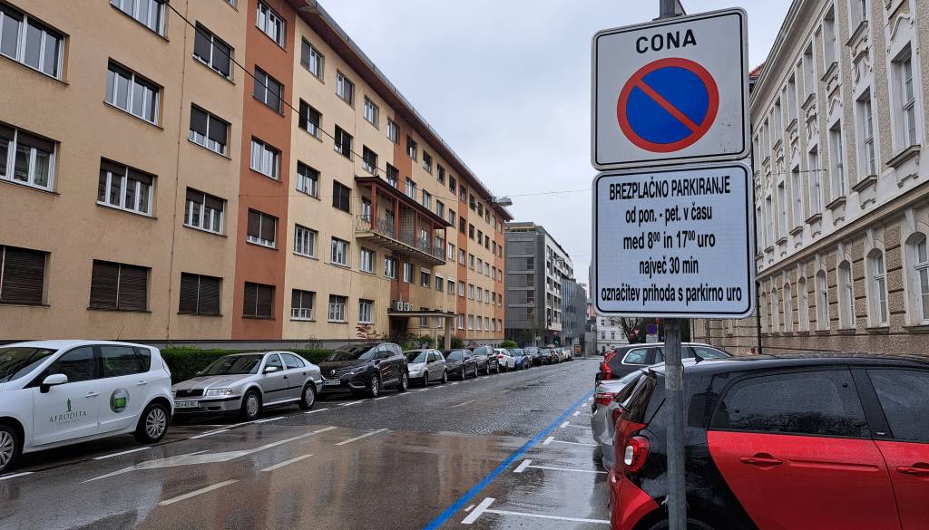 22 parkirnih mest ostaja v modri coni, ki bo odslej uporabnikom brezplačno na voljo le 30 minut.