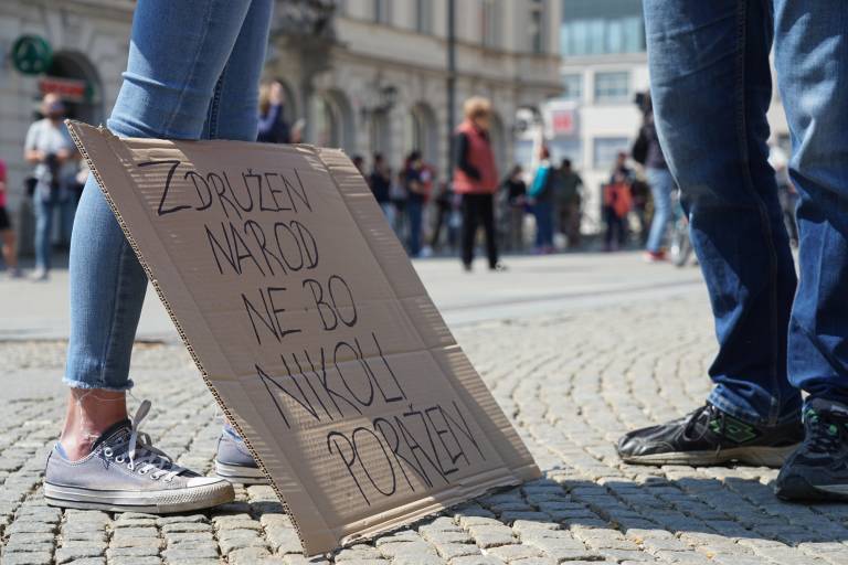 V Mariboru je danes potekal miren protivladni protest. Protestniki med drugim pozivajo ko odstopu odgovorne za afero pri nabavi zaščitne opreme.