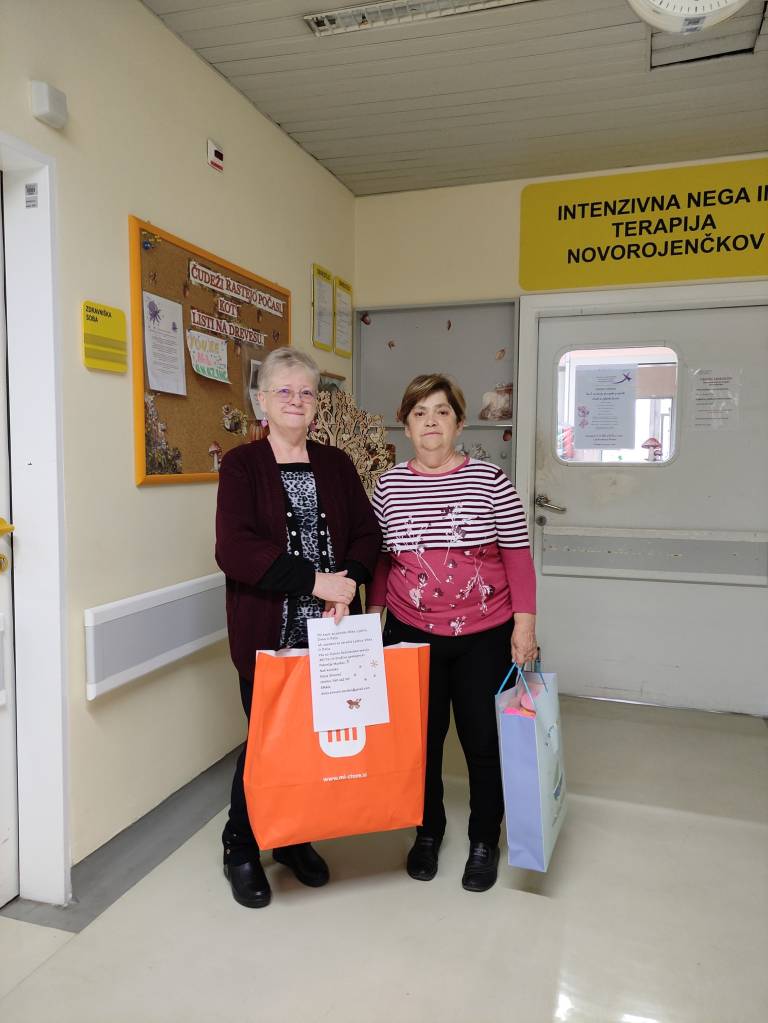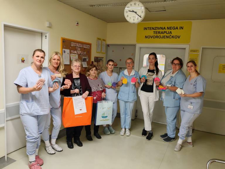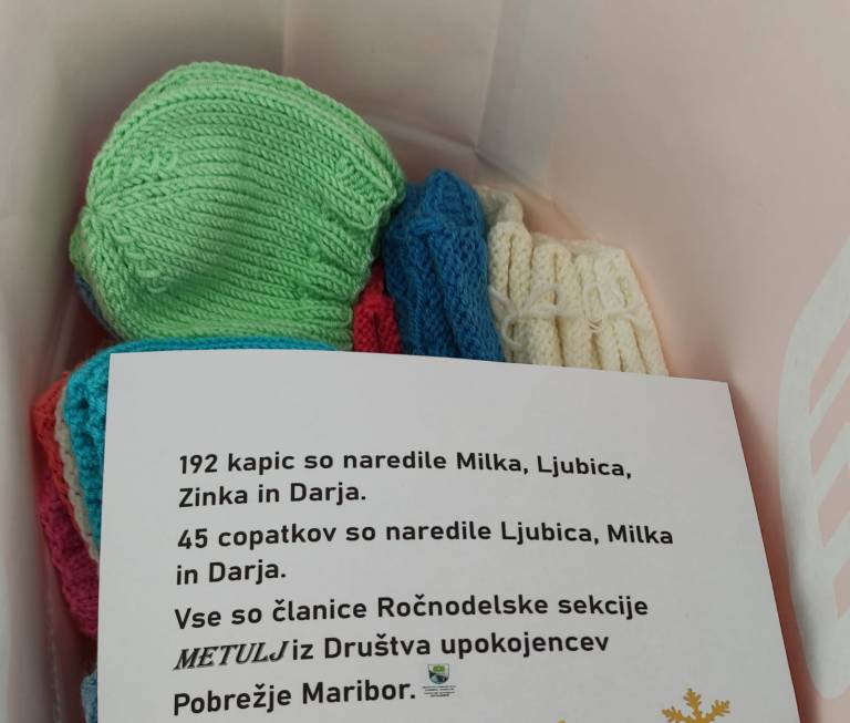 Na oddelek za intenzivno nego in terapijo novorojenčkov so prinesle polne vreče pisanih, skrbno izdelanih kapic in copatk.