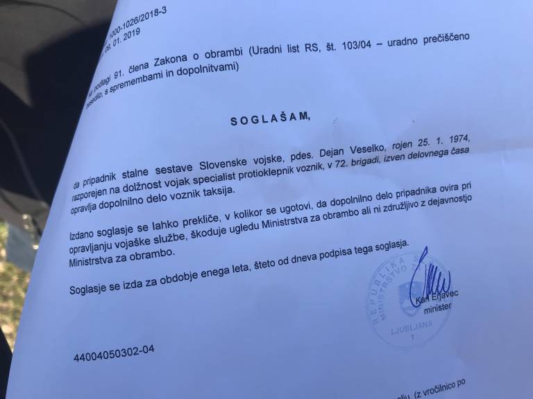 »V takem primeru si prisiljen iti nekaj zraven delati, ker s tem ne boš preživel,« je jasen Veselko. V rokah že drži soglasje ministrstva za obrambo, ki mu ob službi dovoljuje dopolnilno dejavnost, da si bo lahko povrnil tisto, kar je pri plači izgubil: »Vozil bom taksi, koliko se bo le dalo.«