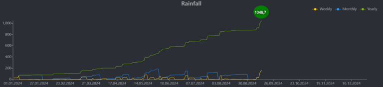 V septembru je že presežena 10-letna količina dežja in celo številka 1000 milimetrov dežja letno.