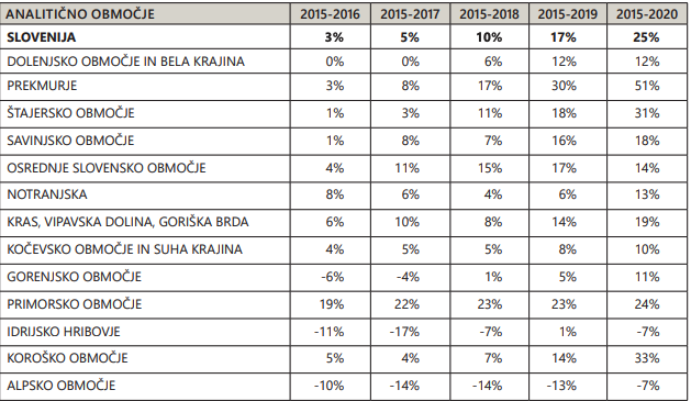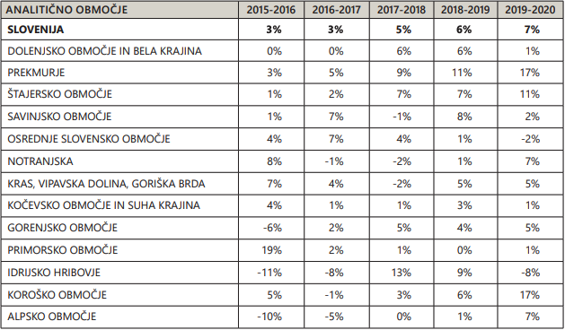Po rasti cen v zadnjih letih izstopata najbolj kmetijski območji oziroma območji z najbolj dejavnim trgom kmetijskih zemljišč, Prekmurje in štajersko območje.