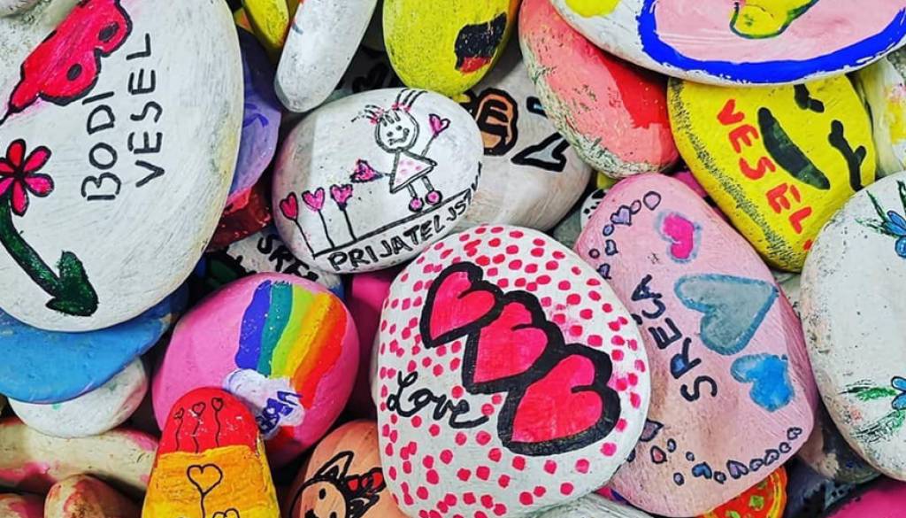 V znak prijaznosti posamezniki na nenavadnih mestih puščajo porisane kamenčke s prijaznimi sporočili.