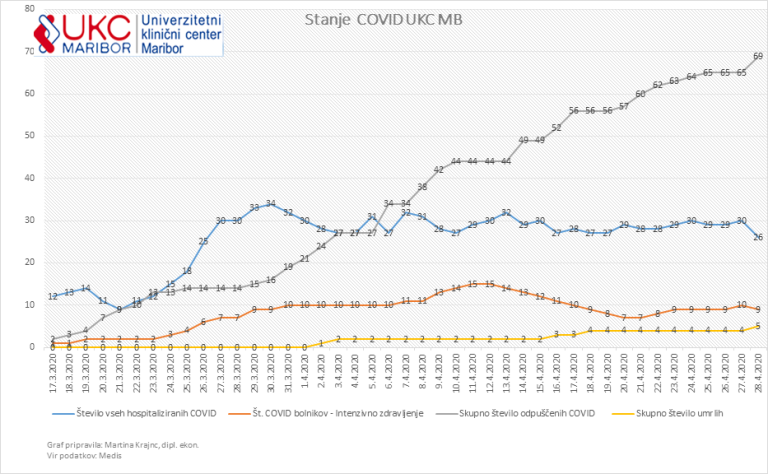 Iz Univerzitetnega kliničnega centra Maribor so sporočili, da je število umrlih, okuženih s koronavirusom, naraslo na pet.