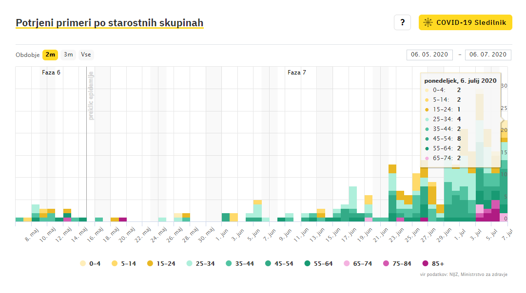V Sloveniji je glede na podatke Covid-19 Sledilnika trenutno 205 aktivnih primerov. Skupno smo v Sloveniji zabeležili že 1739 okužb. Zaradi bolezni covid-19 se trenutno v bolnišnicah po Sloveniji zdravi 12 bolnikov, koronavirus pa je terjal doslej 111 življenj.