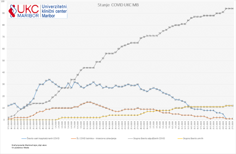 Skupno je bilo v mariborskem kliničnem centru ozdravljenih 94 ljudi s covid-19, dvanajst jih je zaradi te bolezni izgubilo življenje.